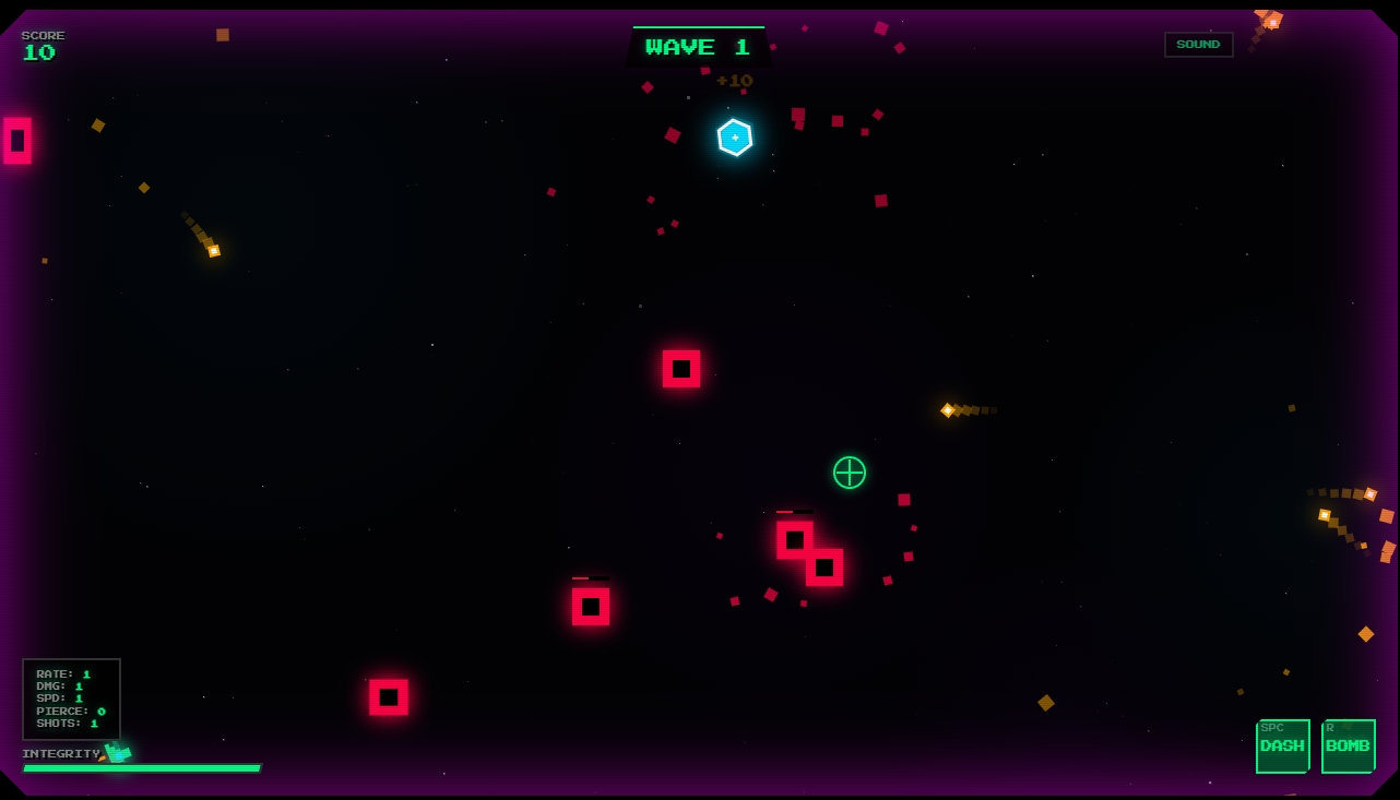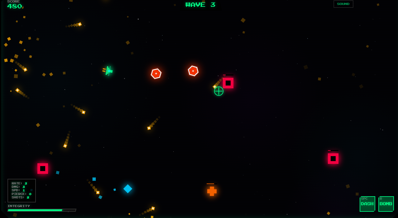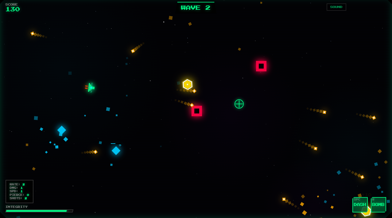 Gravity Break is a roguelite arena shooter where the laws of physics are hilariously broken. Bullets fall like rocks, bounce forever, and curve mid-flight. Enemies slam into each other. Your ship recoils from every shot. Spatial anomalies warp reality. Start from nothing, collect upgrades, and learn to weaponize the weirdness. Nothing behaves like you expect—and that's the point.