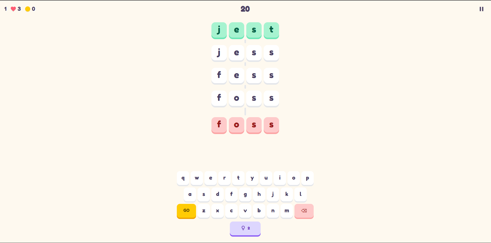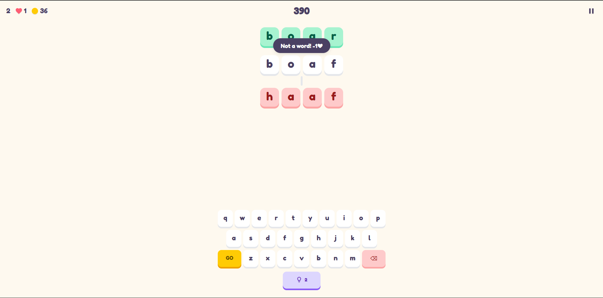 Your objective is simple: change the starting word into the target word by altering just one letter at a time. However, the path to victory is paved with risk. Every invalid guess or mistake costs you precious health, turning a classic word puzzle into a casual rogue experience.